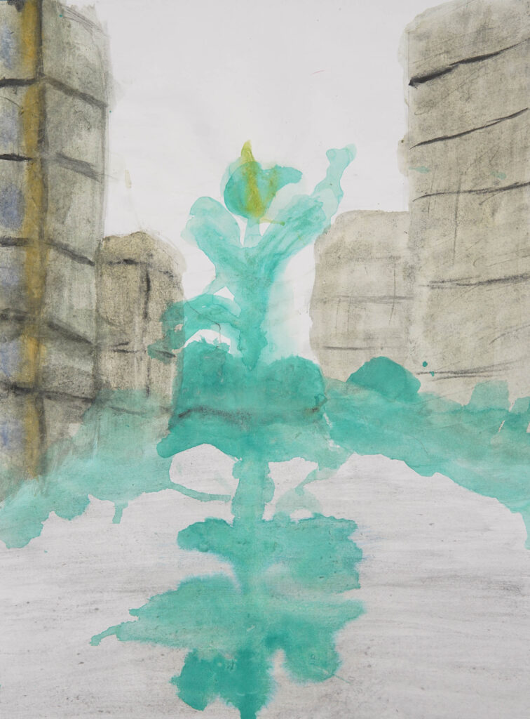 Ich habe mein Werk zum Thema die gerade Kurve; Einzigartig ist besser als Perfekt gemacht. Dabei habe ich die scheinbar perfekten Gebäude in den Kontsrast zu der Einzigartigen Pflanze gestellt. Ich möchte damit ausdrücken, dass die Schönheit des Universumds in der Natur liegt.