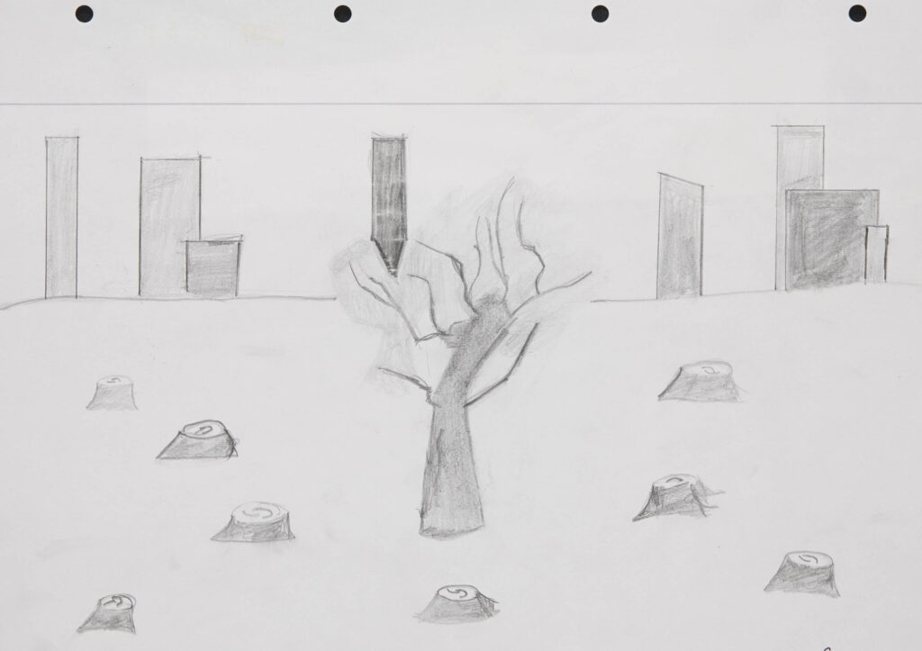 Das Problem der Urbanisierung und Abholzung von Bäumen .