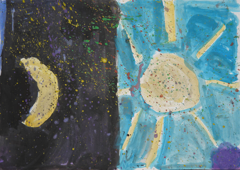 Das Bild zeigt den Gegensatz zwischen Tag und Nacht, hell und Dunkel
