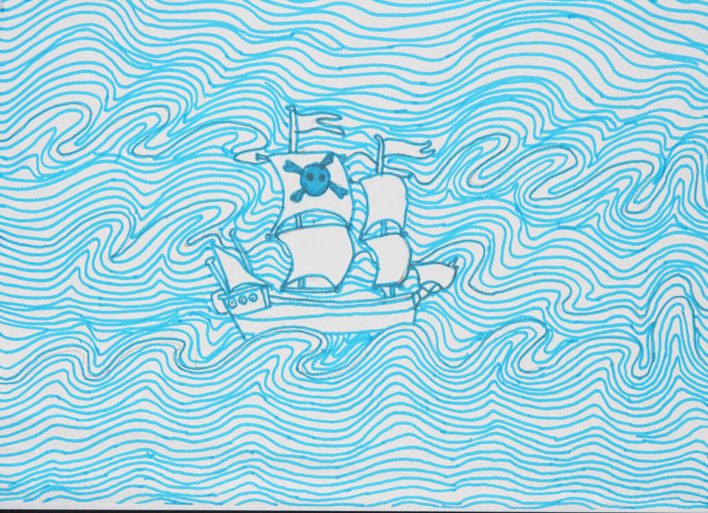 Die Wellen lassen das Segelboot fast verschwinden.