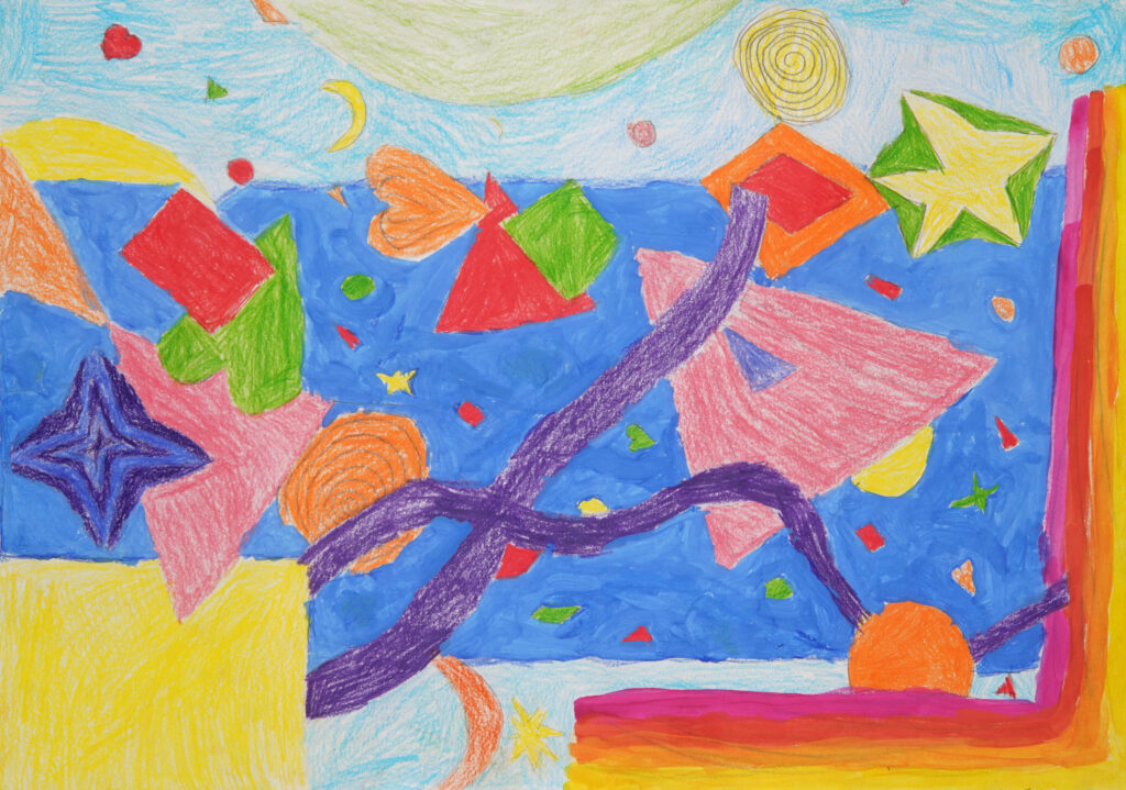 Alle Formen sollten sich überschneiden. Das Bild sollte but sein, möglichst viele Farben haben.